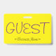 This modern badge design features the message "GUEST", and a customizable company name or other custom message. A badge like this could be used to indicate that a visitor or guest at a workplace is allowed to be there. [~Z0000307]