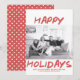 Celebrate the season with this Red Trendy Happy Holidays Photo Card, perfect for sharing warm Christmas greetings. Featuring your cherished family photo set against a clean, minimalist theme, this card showcases modern typography and a trendy design with a bold "Happy Holidays" message and your family name. The simple layout enhances the holiday photo card’s appeal, creating a sleek and inviting aesthetic. Crafted with high-quality printing, this card ensures vibrant colours and crisp details. Personalize with your family photo, name, and custom holiday message to create a trendy and memorable keepsake for your loved ones!