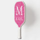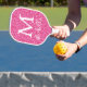 Trendy Hot Pink Glitter Monogram Initial Name Pickleball Paddle