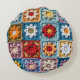 Trendy Knit Granny Square Colourful Floral Pattern Round Pillow