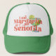Celebrate with these trendy peachy orange "last margarita as a señorita" bachelorette party/bridal party trucker hats.
