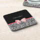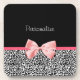 A trendy black and white leopard print coaster with a cute pink ribbon bow wrapped like a present. Personalize by adding your name. Perfect present for a teen girly girl!