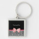 A trendy black and white leopard print keychain with a cute pink ribbon bow wrapped like a present. Personalize by adding your name. Perfect present for a teen girly girl!