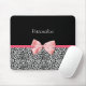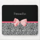 A trendy black and white leopard print mousepad with a cute pink ribbon bow wrapped like a present. Personalize by adding your name. Perfect present for a teen girly girl!