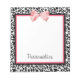 A trendy black and white leopard print notepad with a picture of a cute pink ribbon bow wrapped like a present. Personalize by adding your name. Perfect present for a teen girly girl! Flat printed image, NOT actual ribbon.
