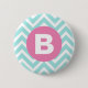 Trendy Light Blue Chevron Pink Monogram 2 Inch Round Button