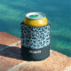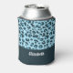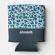 This stylish can cooler features a trendy light blue leopard spots print pattern; easily customizable by adding your name or text on the band on the lower part