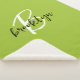 This personalized sherpa blanket features a monogram and first name in modern black and white script on a trendy lime green background.