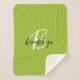 Trendy Lime Green Black and White Script Monogram Sherpa Blanket