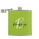 This elegant personalized flask features a monogram and first name in modern black and white script on a trendy lime green background.