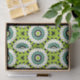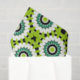 Eye-catching tissue paper design featuring a seamless pattern composed of geometric shapes in green, white and black.