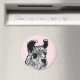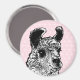 Trendy and bold black and white llama illustration magnet. The background is pink with white triangles pattern.