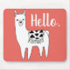Trendy Llama Sketch Hello in Coral Mouse Pad