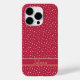 Pretty, modern and trendy phone case features 2023 colour "viva magenta" with two tone gold confetti dots. Personalize with name or monogram