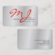 Trendy Makeup Artist Silver Gray Red Monogram Business Card