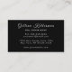 This elegant professional business card features a chic faux silver frame and lettering on black bordered by white marble. The back of the card is black with modern light grey typography with all your information which may be personalized. Designed by artist © Susan Coffey.