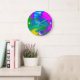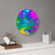 A Colourful Trendy Modern clock with white numbers and abstract painting of flowing colours to brighten-up any room of the house. Makes a great wedding gift, gift for mom, family or friend.