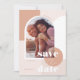 Trendy and modern photo save the date card design. The modern blush rose gold, and tan tone colour palette creates a modern stylish look. "Save The Date" paired with modern hand lettering calligraphy. Trendy geometric design arrangement with the arched photo frame to display your special photo. The reverse side features a bold, modern geometric design.
