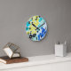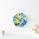 Fun and vibrant leopard print. Colour is bright lime green, blue, black and turquoise. Trendy Glam Vibrant Aqua Blue Lime Leopard Print Round Clock