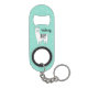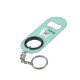 Open a drink on the go with this cute keychain bottle opener! It has a fun and trendy modern llama design over teal and white mini polka dots pattern. Personalize it with your name in script.
