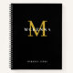 Trendy Modern Monogram Black Gold Initial Name Notebook