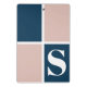 Trendy, stylish and modern, navy blue and blush pink clipboard with a bold geometric square pattern design and personalized with your monogram initial.