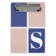 Trendy Modern Monogram Navy Blue Blush Pink Mini Clipboard
