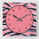 Trendy Modern Pink Black Abstract Pattern Square Wall Clock