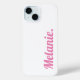 Trendy Modern Pink White iPhone Case. Personalize with your custom name.