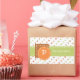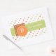 A trendy dotted line pattern sticker with neutral red, brown, and green stripes against a white background, wrapped with a geometric mod square and circle design. Personalize by adding your name and initials. Perfect fashion for the modern and stylish woman.