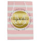 Trendy Monogram Gold Glitter Blush Pink Stripes Medium Gift Bag