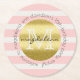Trendy Monogram Gold Glitter Blush Pink Stripes Round Paper Coaster