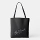 Trendy Monogram White Script Name Modern Black Tote Bag