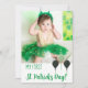 Green Script My First St. Patrick's Day holiday birth announcement photo card. Customize it with your baby favorite picture and announce him/her on St. Patrick's Day to your loved ones. You can also customize the message at the back of the card.