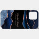 Modern Elegant Navy Blue Rose Gold Black Business iPhone Case. Gorgeous versatile design featuring on trend navy blue agate geode watercolor style abstract art with rose gold glitter accents. Background is shown in Black with customizable text shown in rose gold blush pink colour. Personalize with your business name and title (or any text you like). We invite you to visit our store Simon & Grace to view matching products and more. Please contact us if you require any assistance.