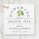 Rustic watercolor green olives and leaves, personalized olive oil wedding favour tags. Back of tag features matching olive pattern. Font styles and colours can be customized. Perfect for weddings, showers, and birthdays.