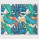 Trendy Orange Yellow Green Tropical Jungle Leaves Wrapping Paper