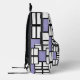 Add a pop of colour and style with this trendy backpack featuring a playful geometric pattern in pale purple, white, and black.