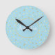 Pretty wall clock features Spun Sugar pastel blue with two tone gold confetti dots combo and customizable centre text.