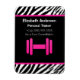 A modern and trendy zebra print personal trainer magnetic business card with a bright pink dumbbell weight. Personalize this exercise and fitness coach design by adding the name of the certified fitness coach.