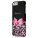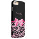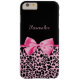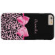 A trendy and stylish pink and black leopard Barely There iPhone 6 Plus Case with a cute hot pink ribbon bow wrapped like a present. Bring out the fashionista in any teen girly girl by adding her name to this cute pink animal print design.