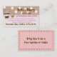 Fun whimsical business card done in tan, white, and pink polka dots and stripes. A sweet pink bow and cute clip artwork of a cake and cup cake decorate the front of this great card. A cutout style coupon on the reverse side. Perfect for a bakery shop, party shop, or an independent custom baker. Customize the text fields to personalize for yourself or your shop. For a whole range of matching products click on my name link and look in the section called Business Solutions.