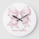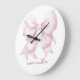 Trendy Pink Bow Personalized With Name Monogram Large Clock