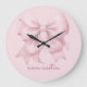 Trendy Pink Bow Personalized With Name Monogram Large Clock