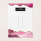 Modern bow hair clip display cards featuring a crisp white background with girly pink & gold agate edges, your business logo, social media icons that can be removed, and your company details.
