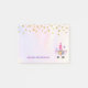 Standard sized sticky notes for an event, such as a birthday or baby shower. Designed with a trendy pink unicorn. Adorned with a fancy floral headpiece. Whimsical butterflies flying around. Fake gold confetti sprinkled along the top. A pale purple and yellow watercolor background.