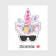 A vinyl decal with a cute and trendy unicorn with butterflies and flowers and wearing black sunglasses.
