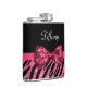 Trendy Pink Zebra Print FAUX Glitz Bow With Name Hip Flask