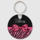 Trendy Pink Zebra Print FAUX Glitz Bow With Name Keychain
