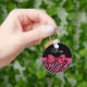 Your teenage girl will feel immersed in girly luxury with this chic designer pink and black glitter zebra print basic keychain with a sequin sparkle ribbon tied into a luxe bow. Personalize this glitz and glam animal print fashion design by adding her name. Flat printed image, not actual glitter or ribbon.